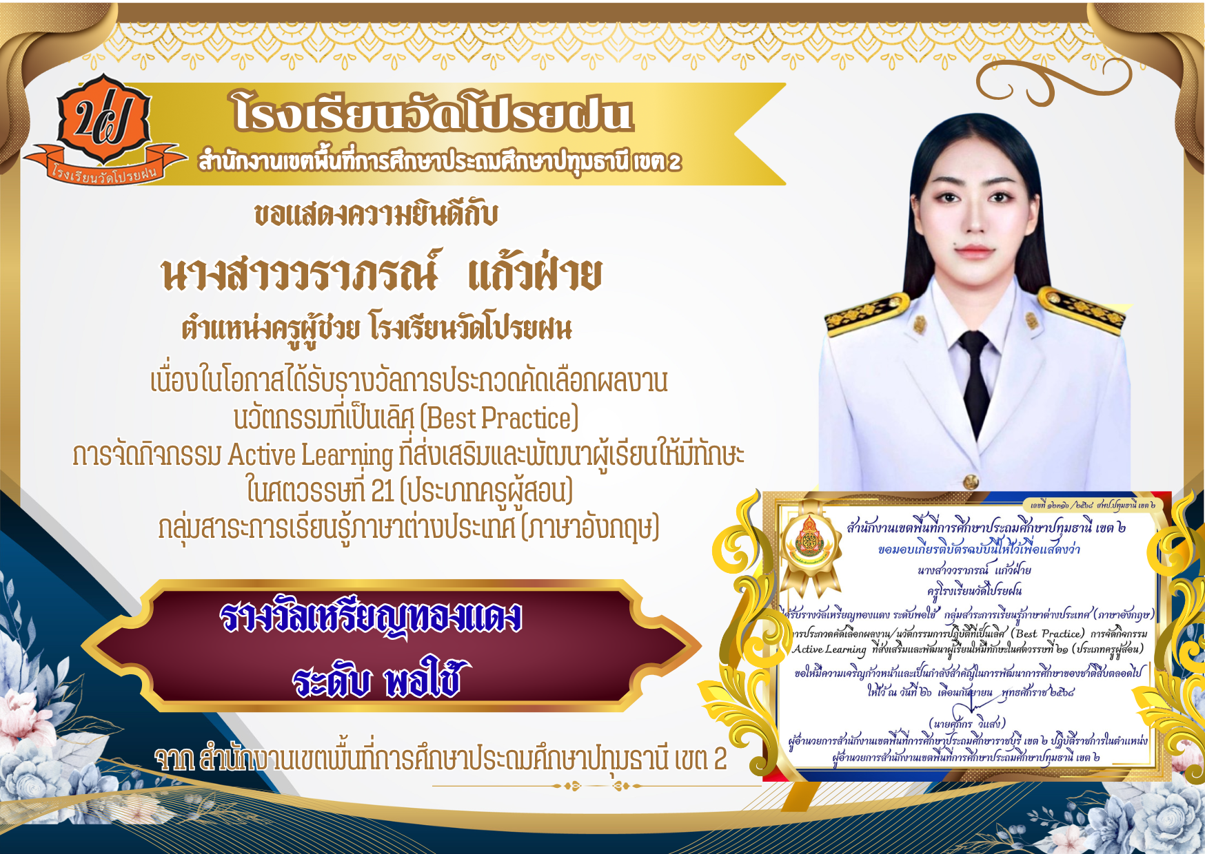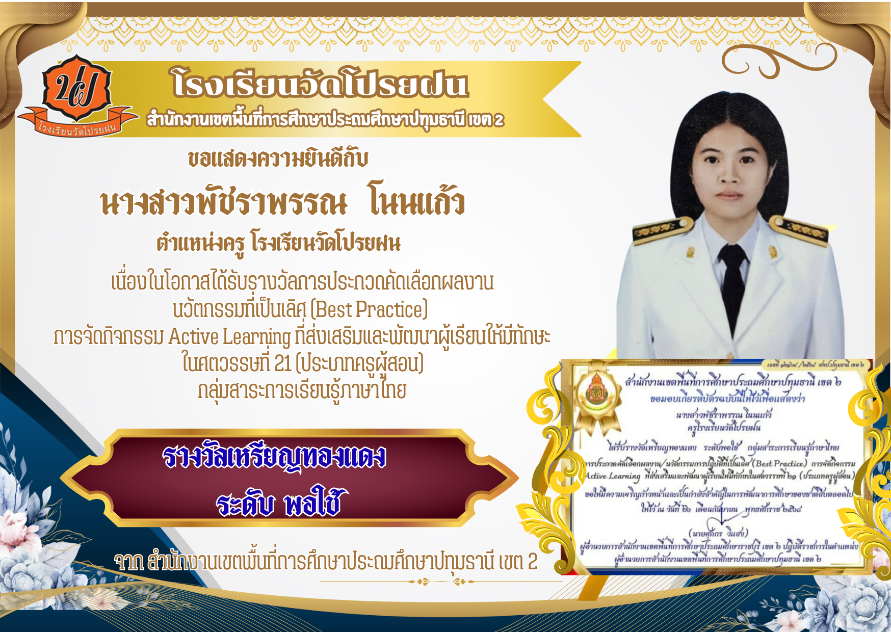 ยินดีต้อนรับ สู่เว็บไซต์โรงเรียนวัดโปรยฝน